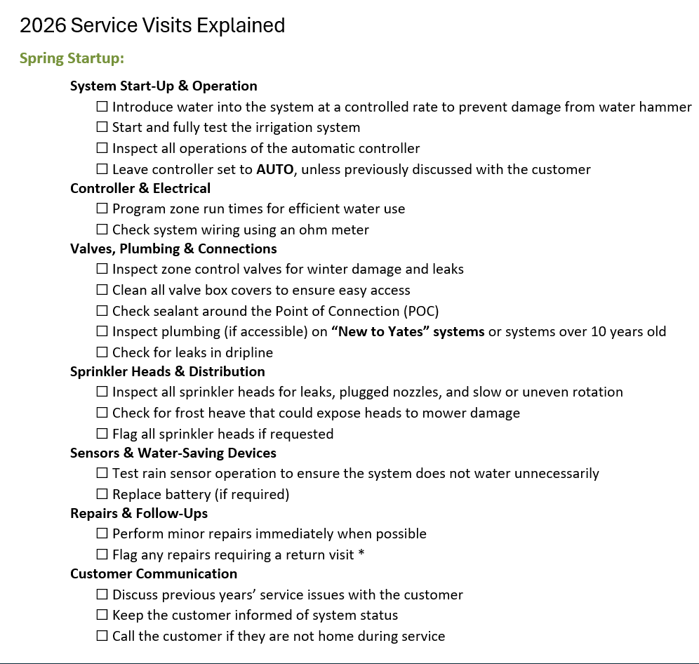 Service Visits: Startup, Mid-Summer Inspections and Winterization